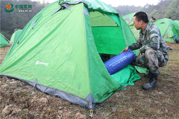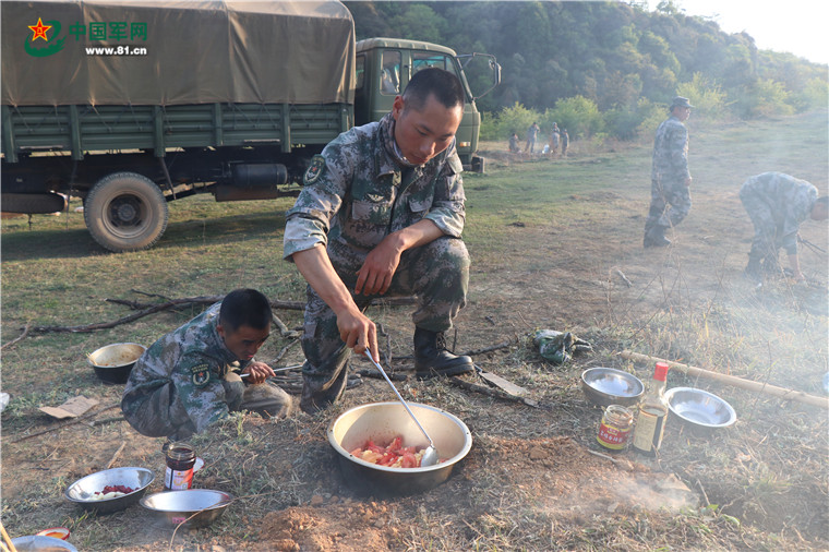 部隊(duì)到達(dá)宿營地點(diǎn)后,學(xué)員們忘記了身體上的疲憊,開始著手準(zhǔn)備晚上的“大餐”,搭設(shè)自己的“小窩”。