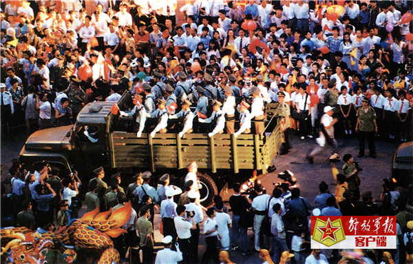 香港回歸歷經(jīng)了艱難的談判,其中在港駐軍問題成為幾輪談判的焦點(diǎn)。所以在香港回歸時(shí)軍隊(duì)進(jìn)駐香港成為人們最關(guān)注的時(shí)刻。在茫茫大雨中看見軍車駛來的時(shí)候,白巖松站在羅湖橋上激動地為電視機(jī)前的觀眾直播:越過管理線!接下來的鏡頭便是大雨中對著解放軍歡呼的香港市民,香港社會組織送上“威武文明之師”的牌匾。這番景象讓當(dāng)年為阻撓駐軍杜撰的謠言“香港老百姓怕解放軍”不攻自破。