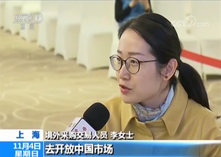 境外采購(gòu)交易人員 李女士:這一次進(jìn)博會(huì),中國(guó)政府以一個(gè)非常積極的姿態(tài)去開(kāi)放中國(guó)市場(chǎng),這對(duì)于我們外資企業(yè)來(lái)說(shuō),也是一個(gè)比較利好的消息。