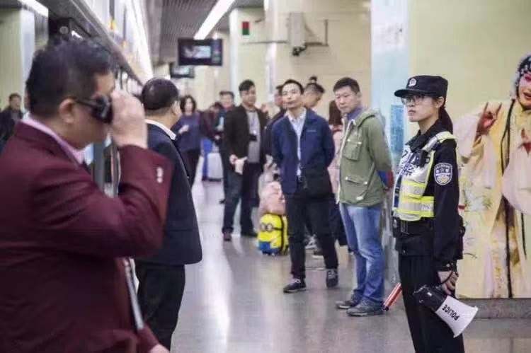 在此期間,警花們需要在每一輛2號(hào)線地鐵??亢鐦蚧疖囌菊九_(tái)時(shí),引導(dǎo)乘客下車,并快速上車檢查是否有未下車的乘客和遺忘的物品。