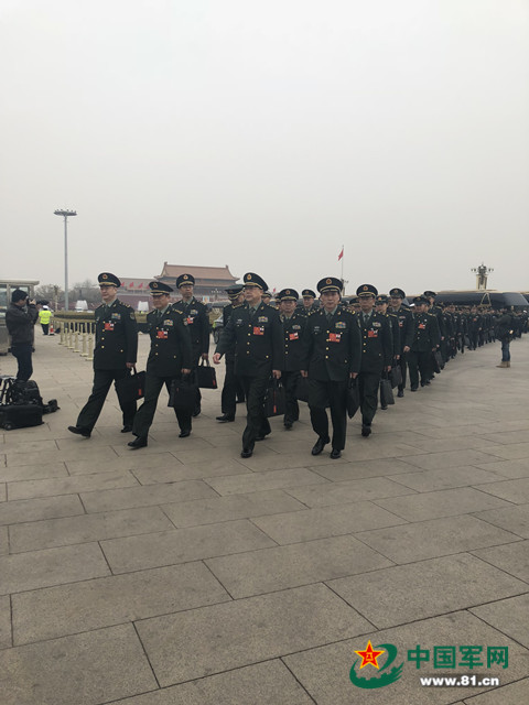 3月4日,十三屆全國人大一次會議舉行預(yù)備會議。解放軍代表團(tuán)成員激情昂揚步入會場。中國軍網(wǎng)記者 張碩 攝