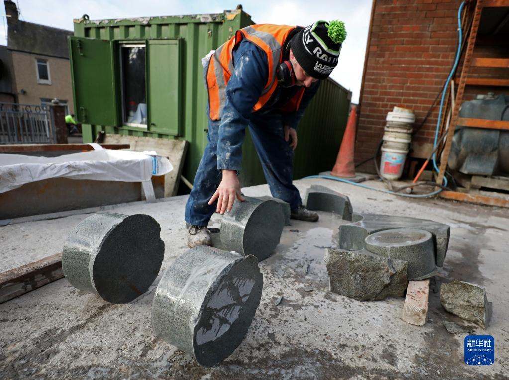從1924年首屆冬奧會(huì)時(shí)冰壺亮相,到1998年長(zhǎng)野冬奧會(huì)起保持正式比賽“編制”,凱斯冰壺廠的冰壺幾乎不曾缺席。蘇格蘭西海岸附近的艾爾莎·克雷格島是目前奧運(yùn)冰壺的原材料唯一產(chǎn)地。從切割原石到打磨、粘合、手工拋光等,一個(gè)冰壺的生產(chǎn)大約要經(jīng)歷20道工序。為了北京冬奧會(huì),凱斯工廠生產(chǎn)了190多個(gè)冰壺,然后精選出96個(gè)送上賽場(chǎng)。在凱斯冰壺廠,工人處理從花崗巖上切下的石塊(1月24日攝)。新華社記者李穎攝