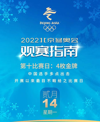 2月9日觀(guān)賽指南:短道速滑任子威力爭(zhēng)第三金2022-02-09 10:37