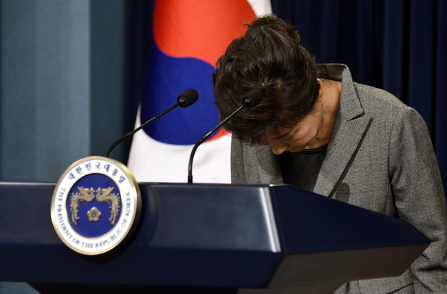 19日,韓國總統(tǒng)樸槿惠在青瓦臺向國民發(fā)表談話,就“世越號”沉船事故表示,總統(tǒng)應(yīng)承擔(dān)這起事故的最終責(zé)任,并說將解散海洋警察廳。圖為樸槿惠在講話中流淚。