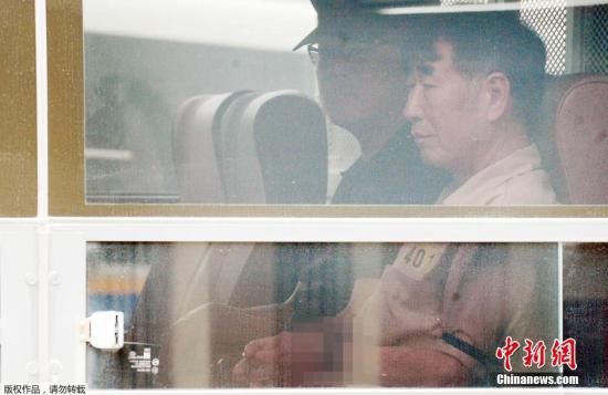 資料圖:2014年6月10日,韓國光州,針對“世越號”(原譯為“歲月號”)沉船事故涉事船員的正式審理程序開始,韓國對涉事船員進(jìn)行首場審判,“世越號”船長李俊錫被押送前往法院。