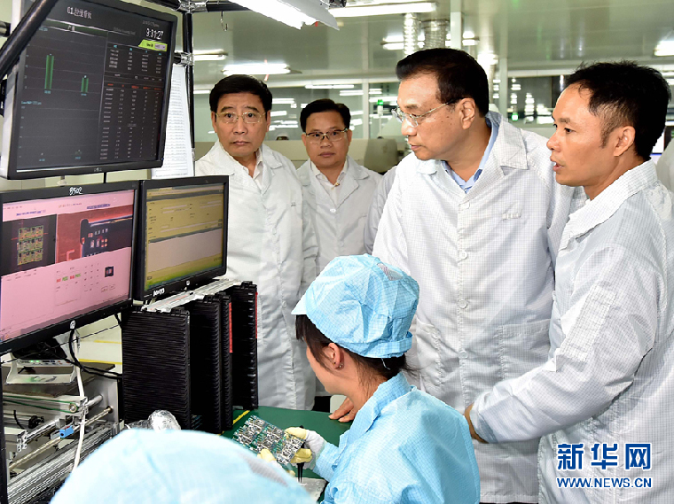 10月12日至13日,中共中央政治局常委、國(guó)務(wù)院總理李克強(qiáng)在廣東深圳、東莞考察,并出席2016年全國(guó)大眾創(chuàng)業(yè)萬(wàn)眾創(chuàng)新活動(dòng)周。這是10月13日,李克強(qiáng)在東莞歐珀數(shù)碼產(chǎn)品公司聽(tīng)取工作人員匯報(bào)企業(yè)生產(chǎn)銷售情況。 新華社記者 李濤攝
