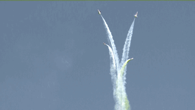 三機編隊扇形解散隊形是在向觀眾表示,表演即將結束,三機通過扇形解散的方式,做最后的落幕表演。