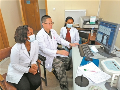 授人以魚更要授人以漁。牛艷坤在日常工作中發(fā)現(xiàn),由于缺乏系統(tǒng)學(xué)習(xí),一些當(dāng)?shù)蒯t(yī)生的診斷思路還不夠開闊,專業(yè)基礎(chǔ)也比較薄弱。為此,他十分注重搞好業(yè)務(wù)幫帶:規(guī)范醫(yī)療行為、組織病例討論、傳授工作經(jīng)驗……經(jīng)過耐心細致的教學(xué),埃軍總醫(yī)院的影像診斷能力得到明顯提升。