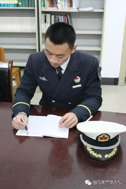 把軍帽端正地放在桌子上,在知識的海洋里暢游吧!