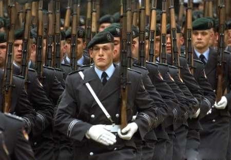 德國(guó)對(duì)軍裝的修改則到了頗為過分的程度,這張照片中是德國(guó)版的“三軍儀仗大隊(duì)”的第8警衛(wèi)營(yíng),儀仗兵大衣的風(fēng)范勉強(qiáng)能與上面日常照片相提并論,德味已經(jīng)不正宗了。