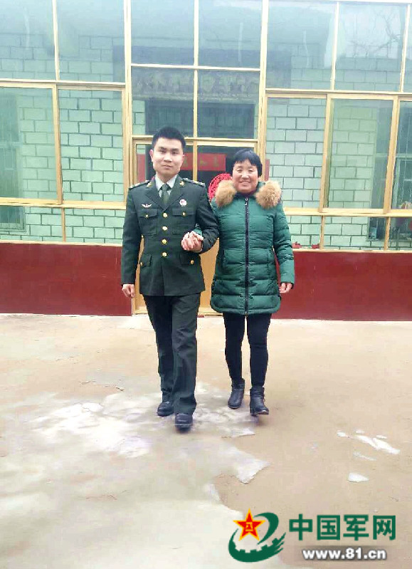 今年春節(jié)期間,第80集團(tuán)軍某部中士王建林回家與媽媽合影