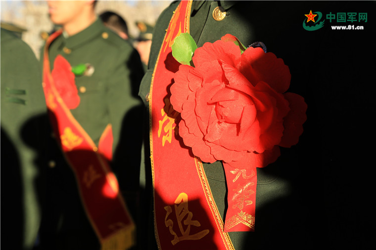 胸前的紅花承載了服役期間的點滴。
