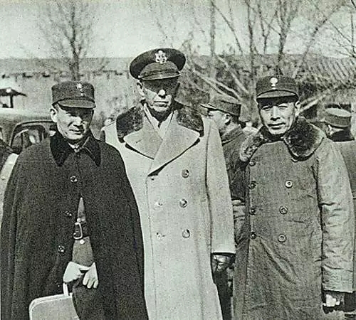 軍調(diào)三人小組,右起:周恩來(lái)、馬歇爾、張治中