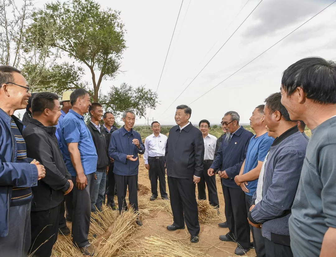 習(xí)近平在武威市古浪縣黃花灘生態(tài)移民區(qū)富民新村同村民親切交談。