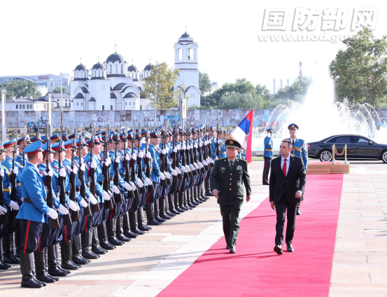 9月6日,中央軍委副主席張又俠與塞爾維亞國(guó)防部長(zhǎng)武林舉行會(huì)談。會(huì)談前,武林為張又俠舉行歡迎儀式并陪同檢閱儀仗隊(duì)。李曉偉攝