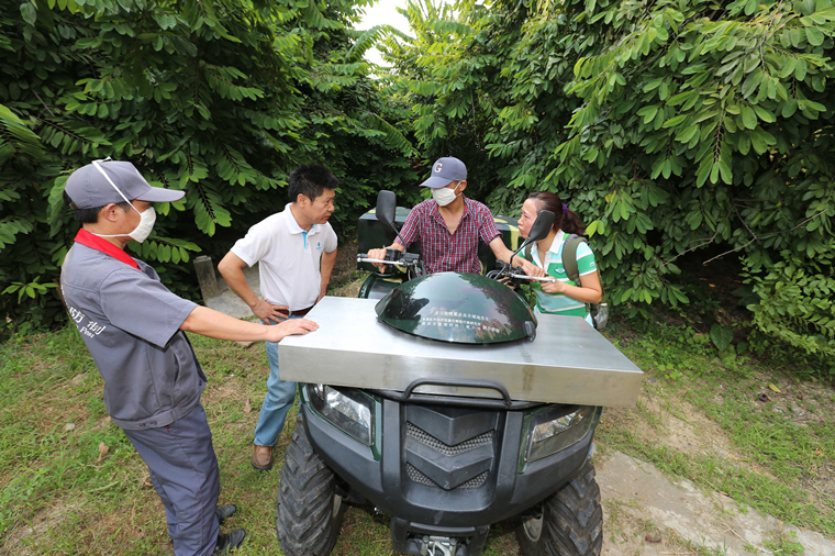 相對科研人員的忙碌,停靠在科研大樓底層的一輛多功能噴霧殺蟲全域地形車是這里唯一的“閑人”。它身材壯實(shí),線條硬朗,看上去還有點(diǎn)“萌”。