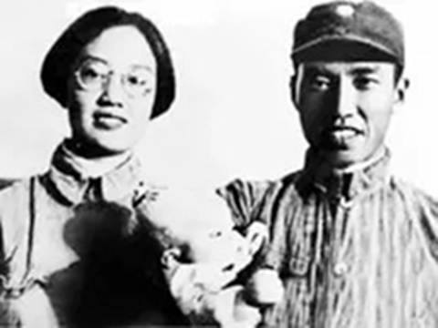 1940年8月,八路軍副參謀長左權(quán)送夫人劉志蘭赴延安學(xué)習(xí),夫妻分別時與懷中的女兒左太北合影。(資料圖)
