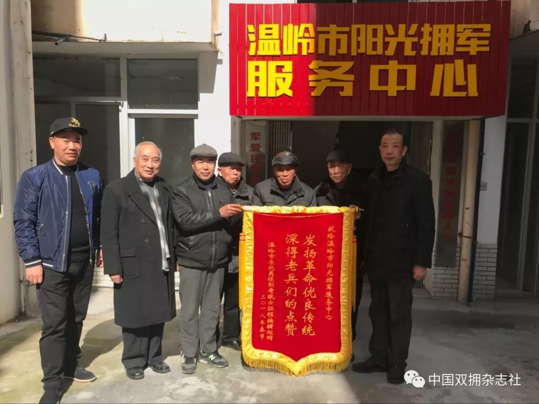 抗美援朝老戰(zhàn)士為溫嶺市陽(yáng)光擁軍服務(wù)中心贈(zèng)送錦旗