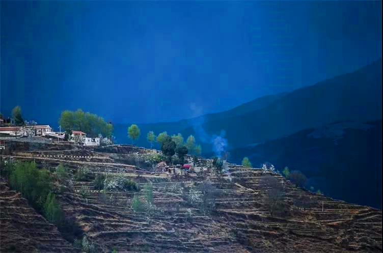農(nóng)忙的凌晨,天尚沒透亮,窗里的燈光翕動,母親已經(jīng)起身,為進山的父親準備早餐。煙囪冒出的炊煙撥開晨霧,叫醒幽幽的山谷。