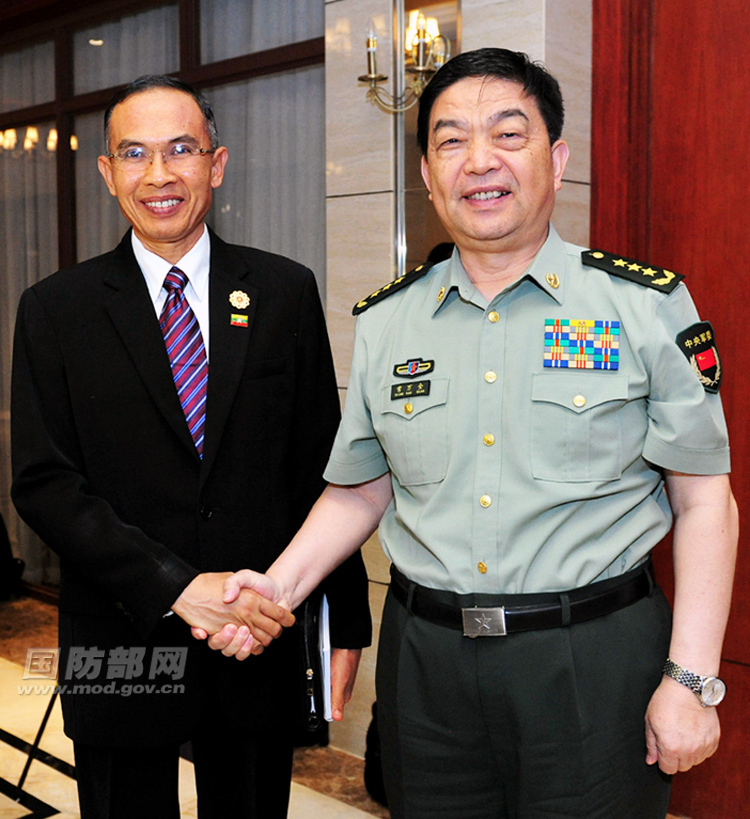 5月24日晚,正在老撾出席第六次中國(guó)—東盟防長(zhǎng)非正式會(huì)晤的國(guó)務(wù)委員兼國(guó)防部長(zhǎng)常萬(wàn)全上將在萬(wàn)象會(huì)見(jiàn)了緬甸國(guó)防部長(zhǎng)盛溫。李曉偉攝