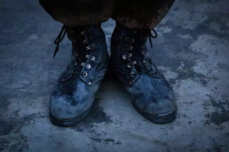 2018年1月12日,西藏自治區(qū),山南軍分區(qū)邊防某營官兵訓練時的鞋子。