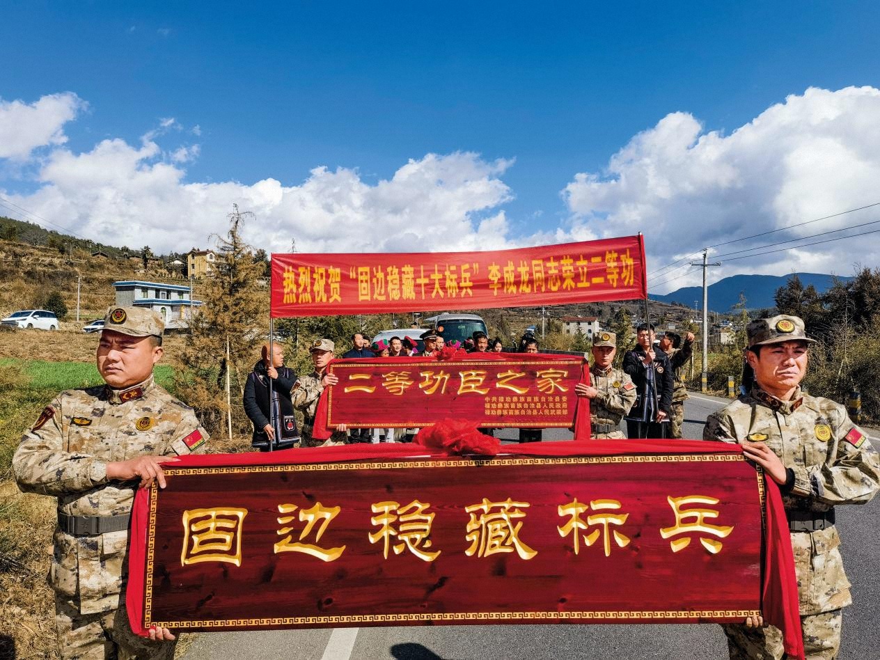 昆明市軍地聯(lián)合為立功受獎軍人家庭送立功喜報和榮譽牌匾。