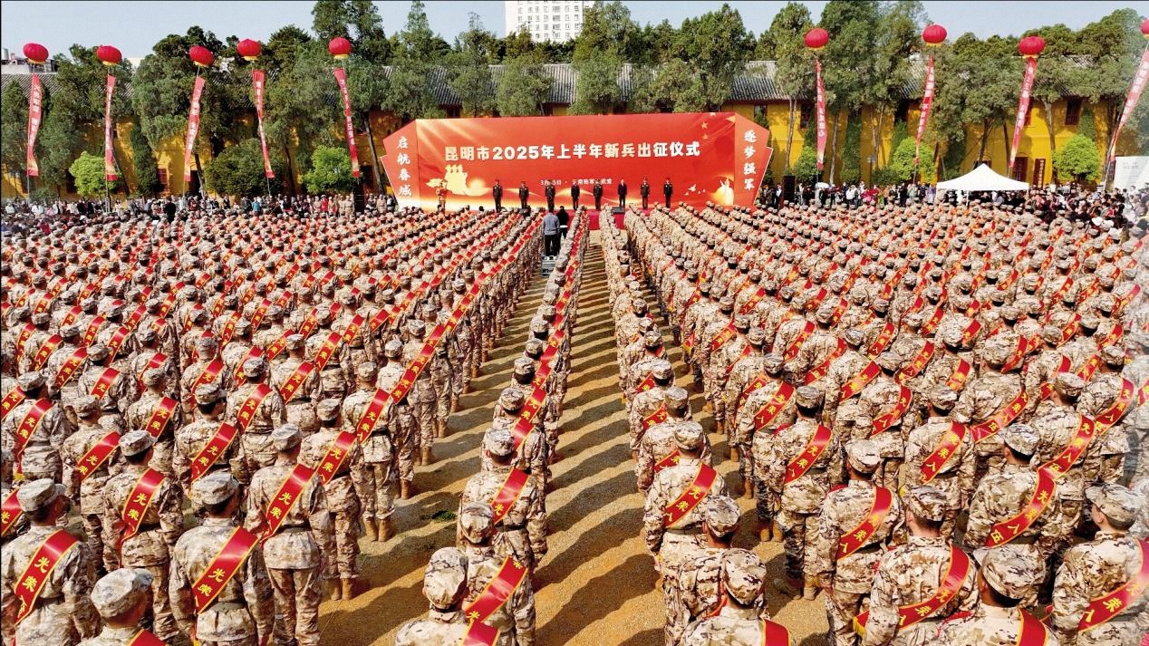 昆明市組織2025年上半年入伍新兵出征儀式。