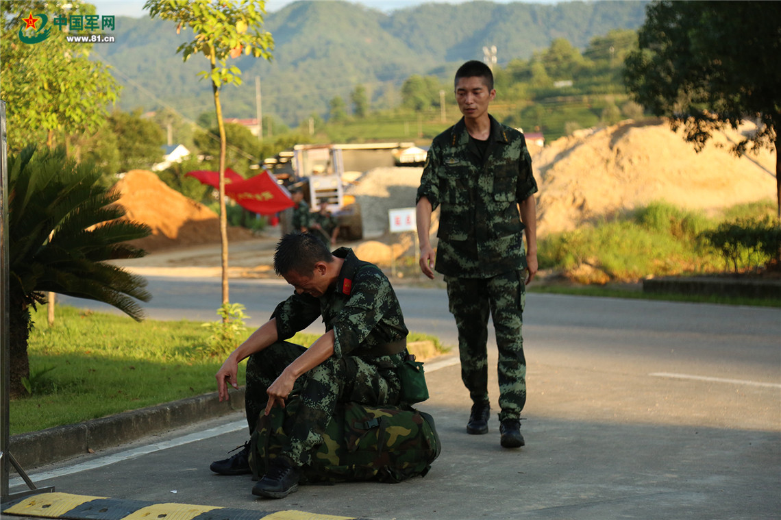 摸底成績(jī)不理想,老班長(zhǎng)坐在背囊上暗暗自責(zé),指導(dǎo)員見狀上前安慰