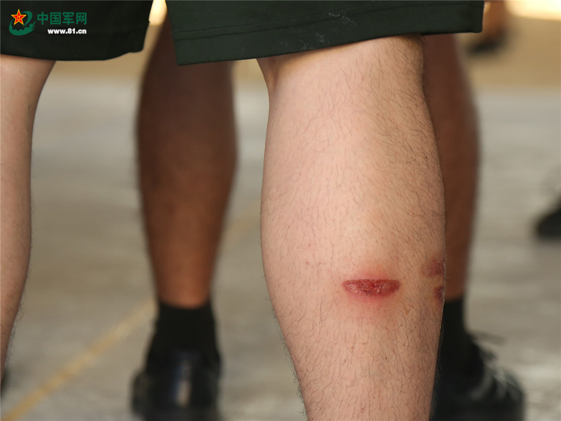 因首次參加比武缺乏訓(xùn)練經(jīng)驗(yàn),列兵李正龍?jiān)谝淮挝溲b五公里越野中中暑暈倒。當(dāng)大家手忙腳亂抬他去醫(yī)務(wù)室時(shí),他的嘴里還嘟囔著“我沒事,我要上,不上太丟人了……”??祻?fù)治療期間,這個(gè)黝黑的北方漢子一句“我能不能回去訓(xùn)練啊,我怕抽血”逗樂了陪護(hù)治療的中隊(duì)排長(zhǎng);炊事班戰(zhàn)士歐旭聰在野外炊事訓(xùn)練中,不慎被燒熱的鐵鍋燙傷,在小腿上留下了三道拇指長(zhǎng)的疤,“我這叫提前把比武的獎(jiǎng)牌‘烙’在了腿上,是個(gè)好兆頭” 他自己半開玩笑地說道;班長(zhǎng)李航的蕁麻疹癥狀反反復(fù)復(fù),皮膚一受刺激便發(fā)紅起疹、又疼又癢,為了不缺席比武前的強(qiáng)化訓(xùn)練,李航只能依靠各種外敷藥物壓制病癥,跑起步來,他散發(fā)的藥味兒能蓋住一個(gè)班的汗味兒;剛剛改選士官的李文輝7月初在武警南平市森林支隊(duì)尖子比武中取得第一名的好成績(jī),載譽(yù)而歸。可還沒來得及松口氣,他便立刻擔(dān)任起了軍事體育教員,帶領(lǐng)中隊(duì)官兵為此次比武積極備戰(zhàn);“老司機(jī)”譚獻(xiàn)助得知中隊(duì)受領(lǐng)比武任務(wù)后,悄悄收起剛填好的休假申請(qǐng),毅然投入到緊張的訓(xùn)練當(dāng)中,并不斷刷新駕駛員考核中更換輪胎項(xiàng)目的最好成績(jī),而今年恰好是他二期士官最后一年;中隊(duì)長(zhǎng)劉廣明年初剛剛與相戀五年的女友步入婚姻的殿堂,本打算休假時(shí)去拍一套婚紗照,可從年初的冬季大練兵考核直到如今的建制班比武,劉廣明的影樓預(yù)約延期了一次又一次,備考的教案卻整理了一本又一本……