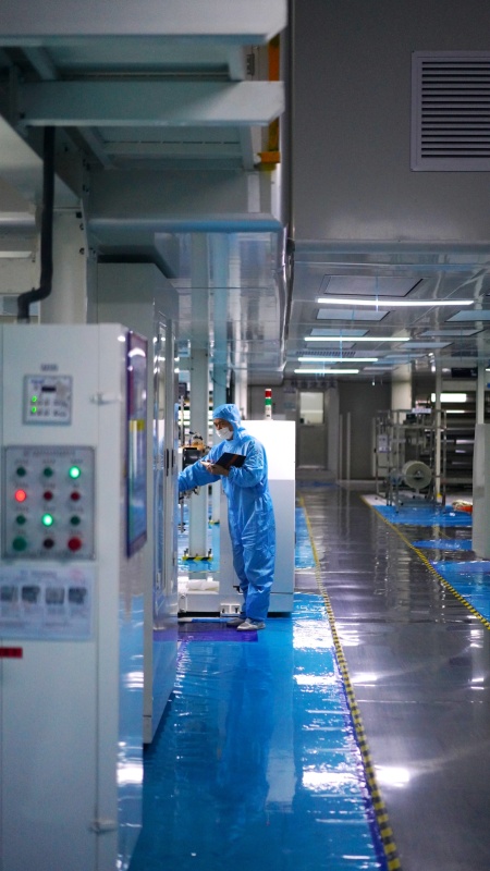 在井岡山產(chǎn)業(yè)園生產(chǎn)光學(xué)膜的江西藍海芯科技集團,工人在車間檢測產(chǎn)品(11月21日攝)。