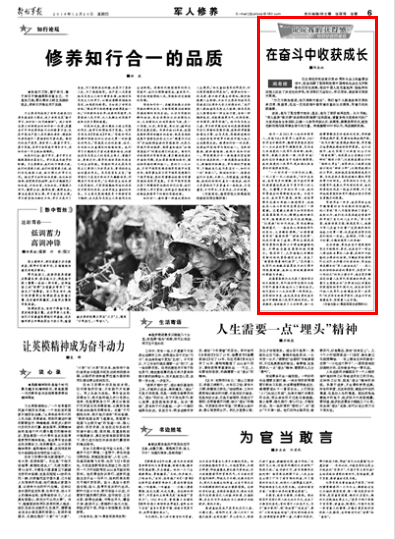 述說,是為了堅定前行信念;盤點,是為了更好地再出發(fā)。從今天起,“軍人修養(yǎng)”版開辟“說說我的獲得感”這塊園地,請置身偉大變革時代的廣大官兵結(jié)合自身實際,以第一人稱形式談?wù)J識、說感受,凝聚思想共識,激發(fā)在新征程為強軍事業(yè)奮斗的力量。來稿篇幅1500字以內(nèi),歡迎踴躍投稿。