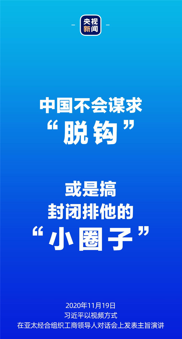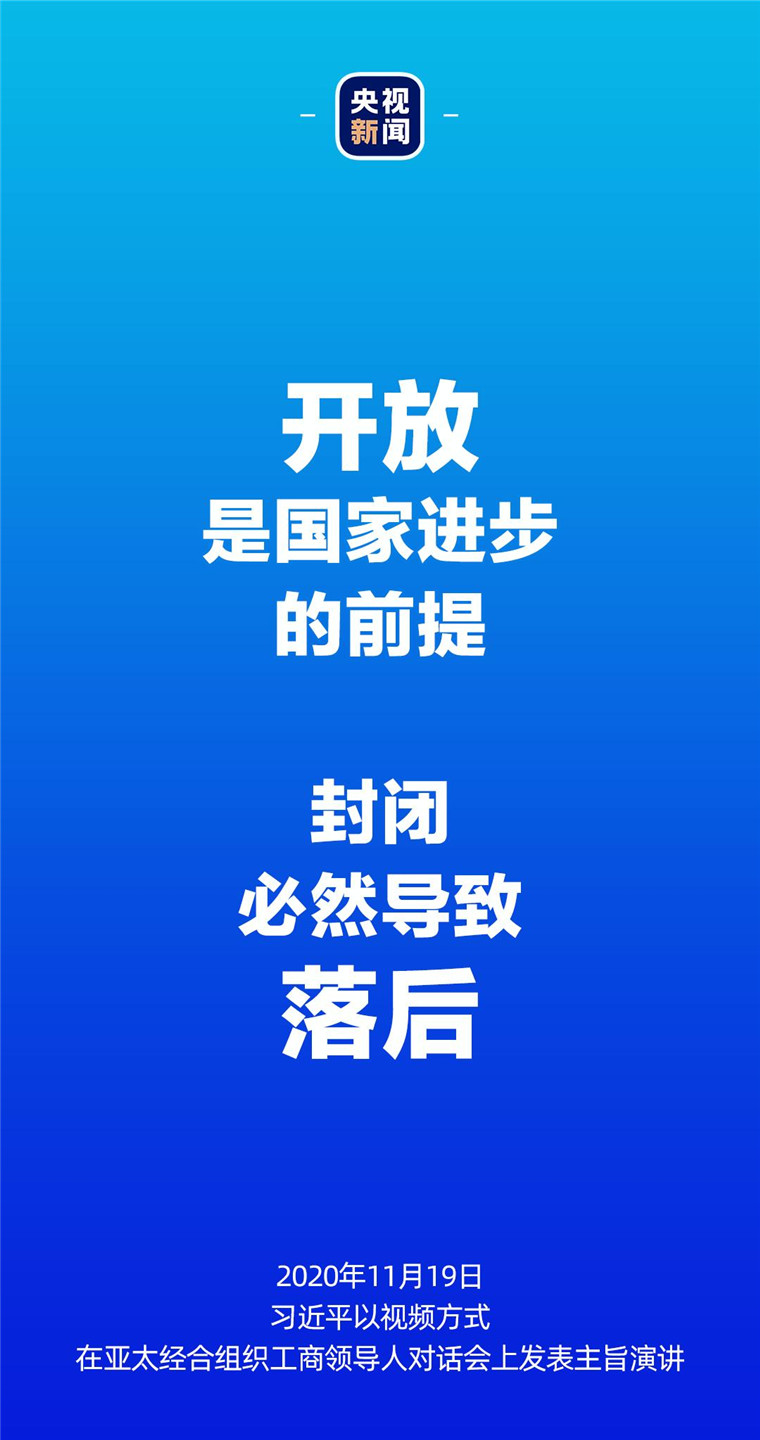 19日,國家主席習(xí)近平在北京以視頻方式出席亞太經(jīng)合組織工商領(lǐng)導(dǎo)人對話會并發(fā)表主旨演講。對于亞太區(qū)域經(jīng)濟(jì)合作和全球治理,習(xí)主席給出了怎樣的“中國方案”?來看梳理↓
