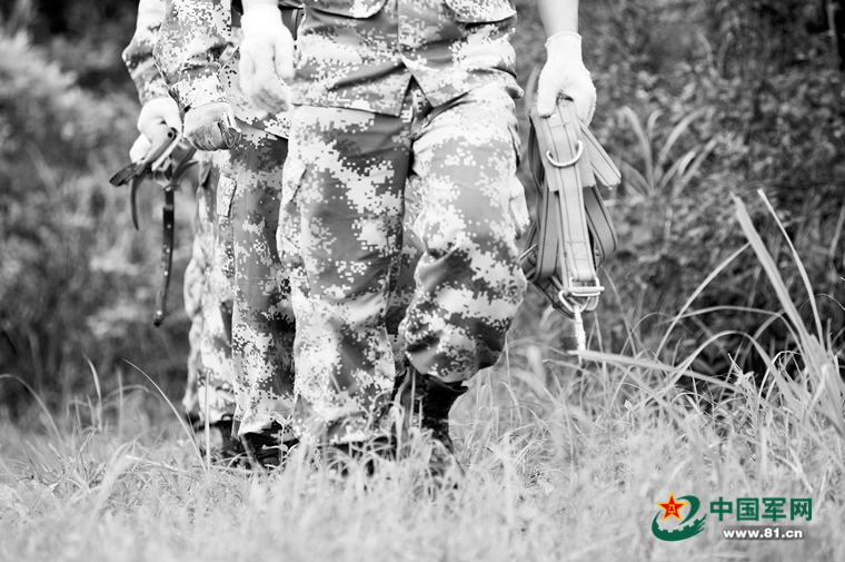 在一處近乎垂直的山崖前,張俊毅將繩子系在自己腰間,在2名戰(zhàn)友協(xié)助下,一點點向山下挪步。