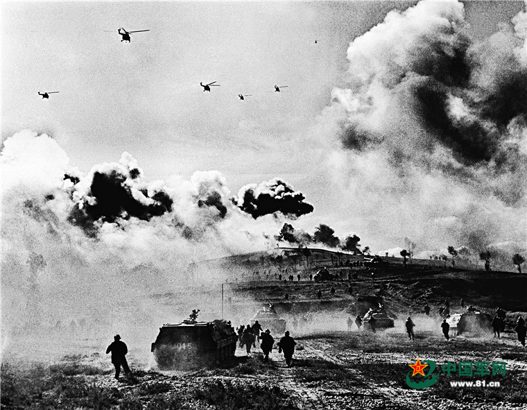1981年9月14日至18日,我軍在華北地區(qū)舉行戰(zhàn)略性戰(zhàn)役演習。這場演習對于當時提高我軍在現(xiàn)代條件下組織指揮各軍兵種協(xié)同作戰(zhàn)的能力,發(fā)揮了重要作用。進入20世紀80年代后,以“華北大演習”引發(fā)的合同戰(zhàn)役戰(zhàn)術(shù)訓練改革為標志,我軍開始了由單一兵種訓練向諸軍兵種合同訓練的轉(zhuǎn)變。圖為演習中的一個場景。