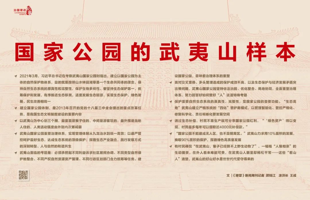 ◆ 武夷山國(guó)家公園重塑治理體系,實(shí)現(xiàn)管理體制從九龍治水到統(tǒng)一高效;以最嚴(yán)管控呵護(hù)最好生態(tài),達(dá)成生態(tài)系統(tǒng)的頂級(jí)保護(hù);探路生態(tài)產(chǎn)業(yè)融合,踐行發(fā)展方式的深刻轉(zhuǎn)型、人與自然的和諧共生