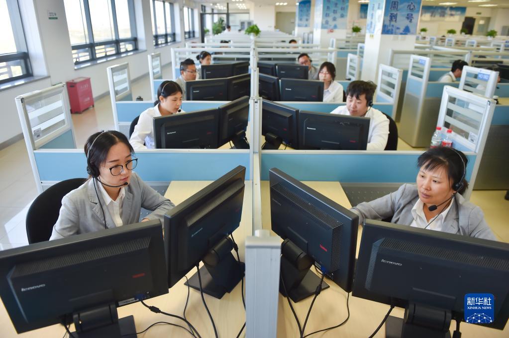 在位于北京亦莊的12345市民熱線話務大廳,工作人員接聽熱線電話(2019年11月13日攝)。新華社記者 彭子洋 攝