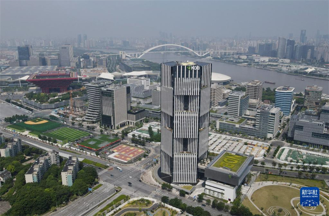 位于上海浦東新區(qū)世博園區(qū)的金磚國家新開發(fā)銀行總部大樓(6月17日攝,無人機照片)。新華社記者 方喆 攝