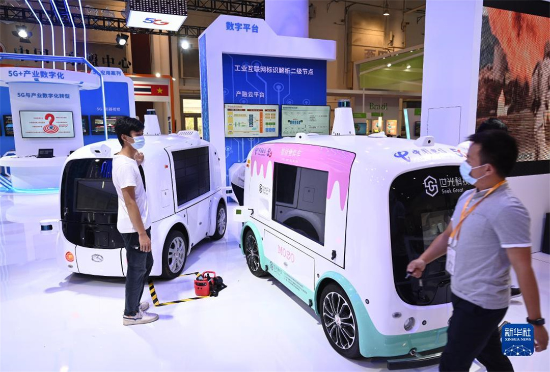 中國制造的智能汽車模型在廈門舉行的2021金磚國家新工業(yè)革命展上展出(2021年9月9日攝)。新華社記者 林善傳 攝
