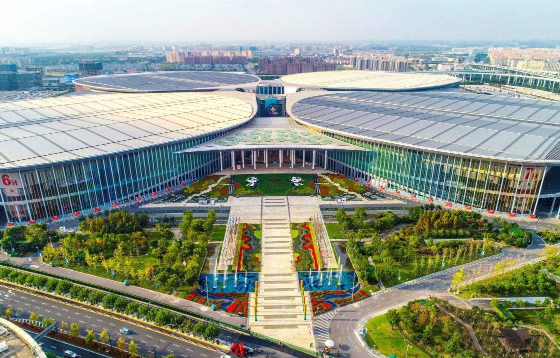 2021年10月31日拍攝的國(guó)家會(huì)展中心(上海)(無(wú)人機(jī)照片)。新華社發(fā)(蔣中呈 攝)