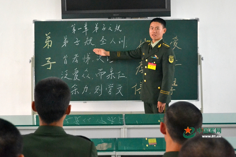 中國(guó)軍網(wǎng)訊 (楊陽(yáng) 馬曉偉)“‘首孝悌,次謹(jǐn)信’的意思是孝順父母、愛(ài)護(hù)兄弟,《弟子規(guī)》教會(huì)了我最基本的人生道理?!边@是新戰(zhàn)士趙強(qiáng)在國(guó)學(xué)心得交流會(huì)上的發(fā)言。