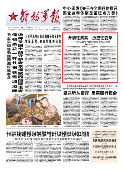 請(qǐng)關(guān)注今日出版的《解放軍報(bào)》發(fā)表的評(píng)論文章——
