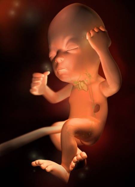 ??? 第25周-胎兒體重穩(wěn)定增加,約有570克。皮膚很薄且有皺紋,幾乎沒有皮下脂肪,全身覆蓋著一層細(xì)細(xì)的絨毛,身體比例較為均稱。胎兒開始充滿整個子宮。胎兒舌頭上的味蕾正在形成。