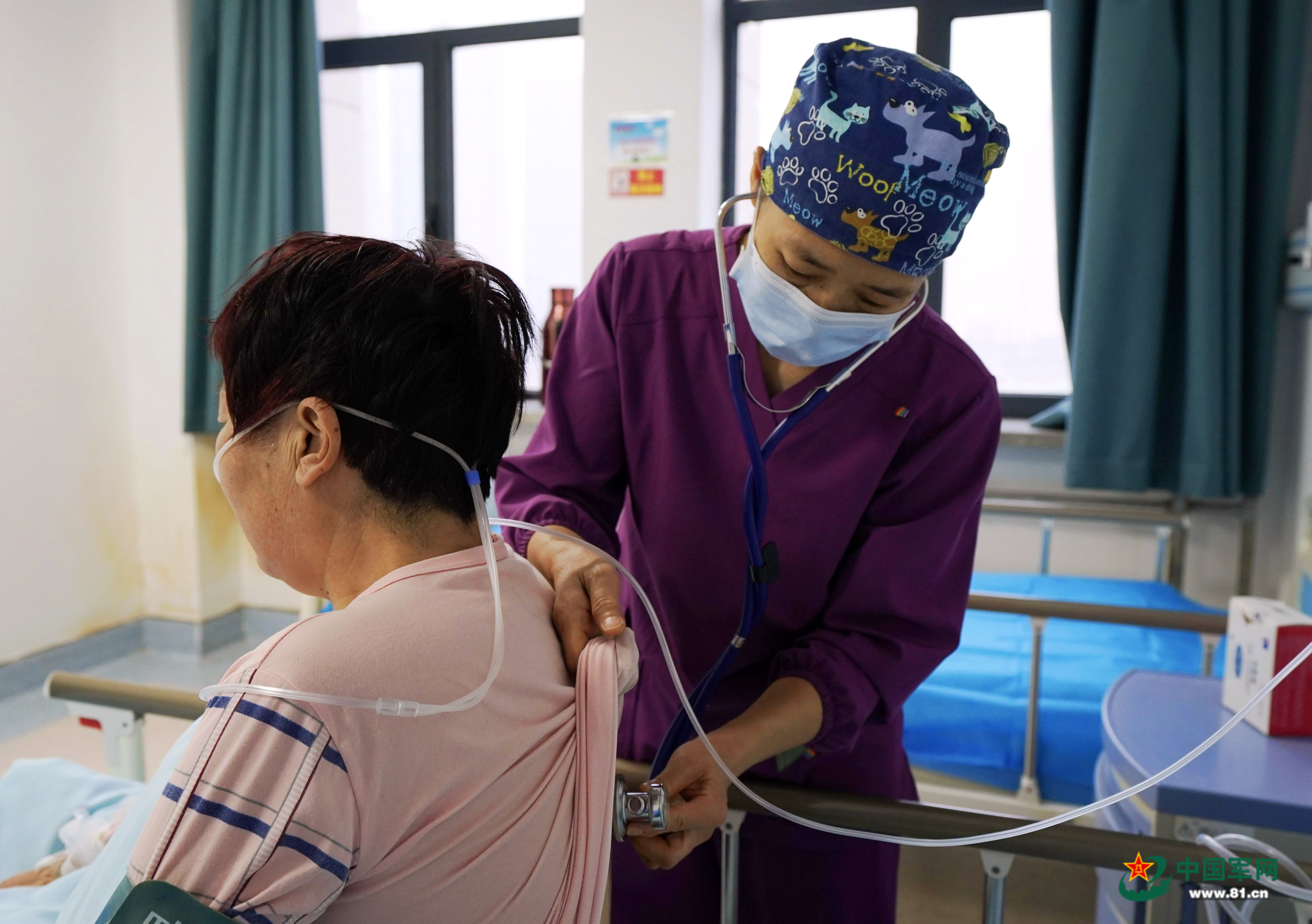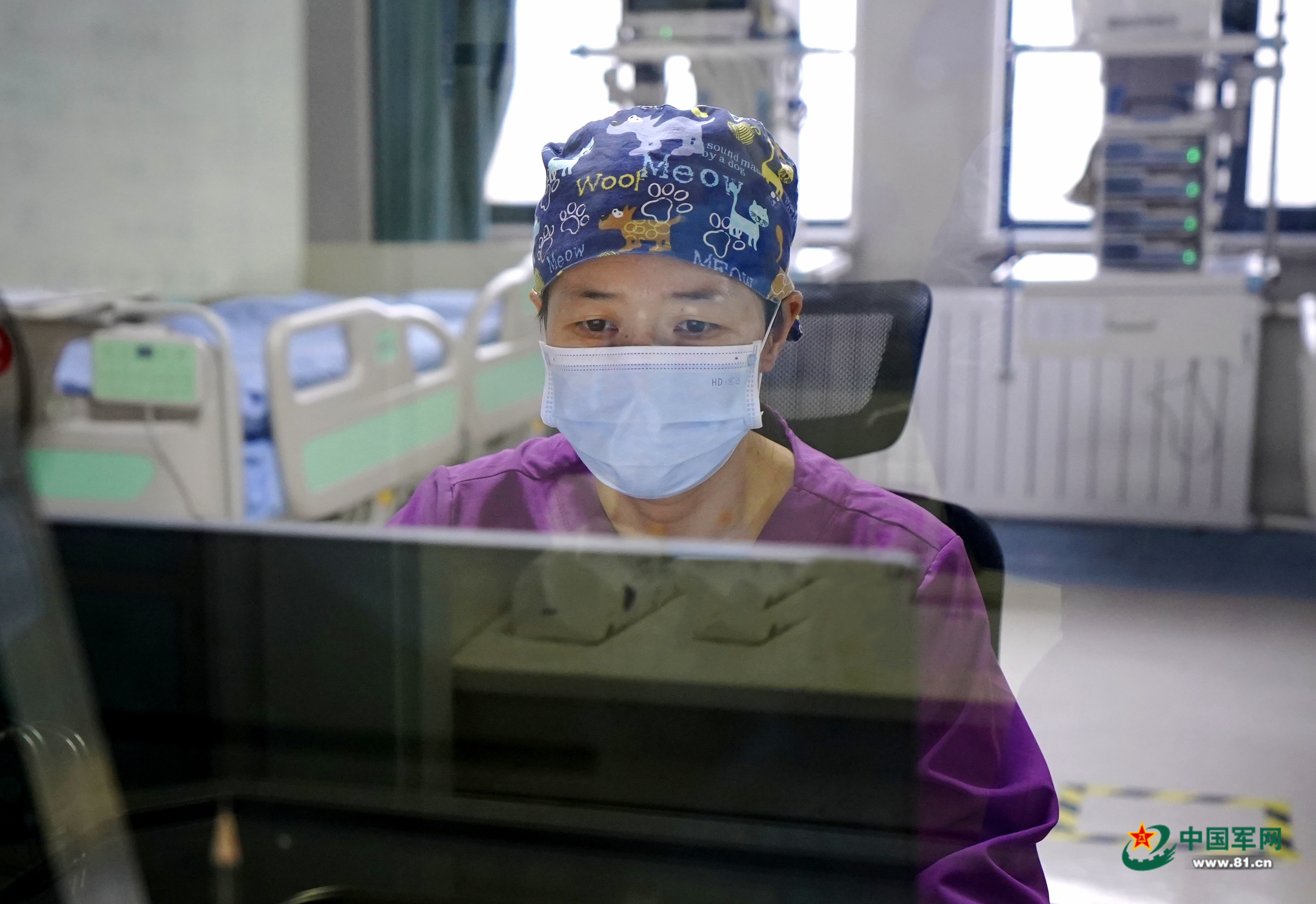 張瑛觀察患者情況。中國軍網(wǎng)記者 林詩清 攝