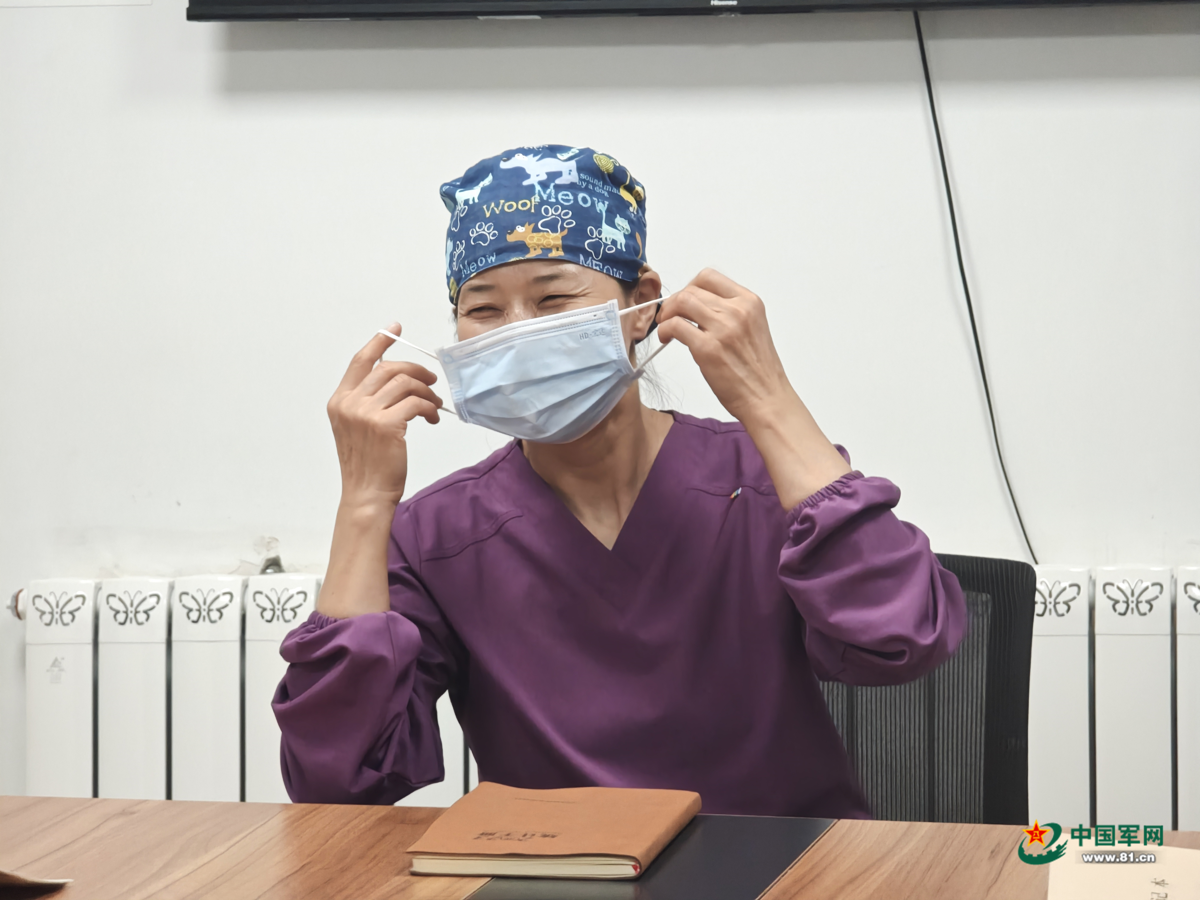 張瑛得知患者情況好轉(zhuǎn)時露出笑容。中國軍網(wǎng)記者 林詩清 攝