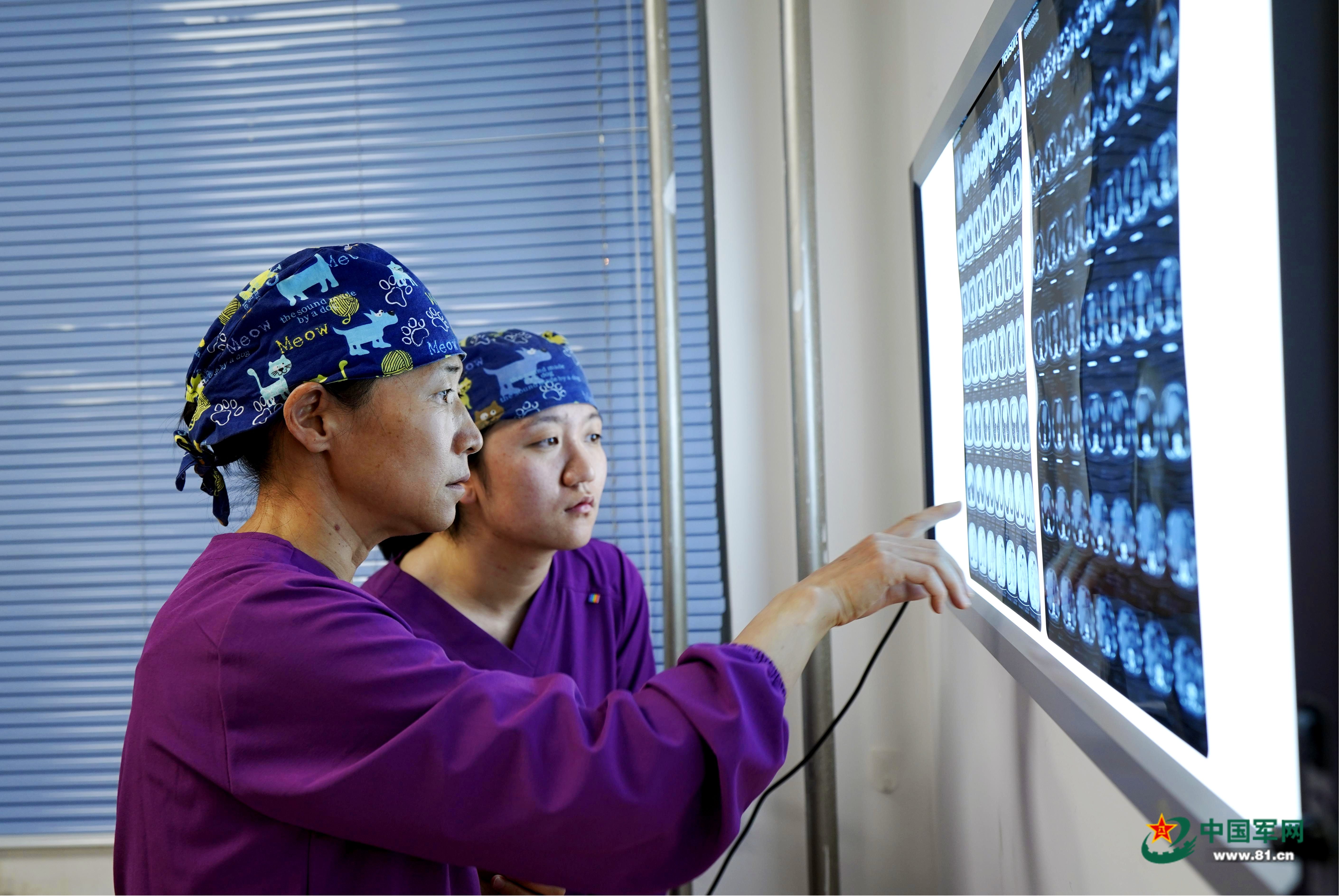張瑛查看患者胸部CT片。中國軍網(wǎng)記者 林詩清 攝
