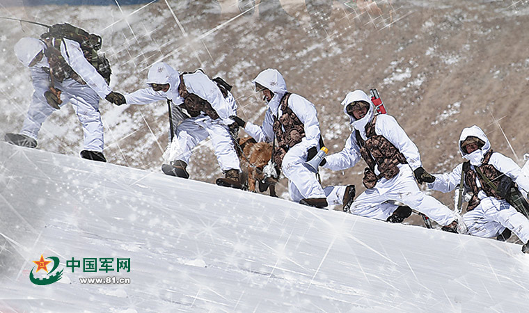 駐守在阿里高原的扎西崗邊防連巡邏小分隊正在翻越達坂。劉曉東 攝