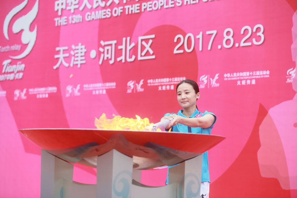 8月23日上午,第十三屆全運(yùn)會(huì)火炬?zhèn)鬟f儀式第十四站在天津市河北區(qū)進(jìn)行。