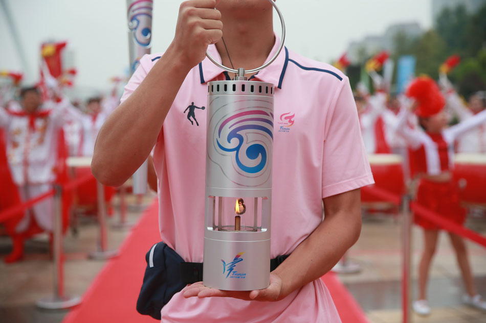 第十三屆全運(yùn)會(huì)火炬在天津河北區(qū)傳遞