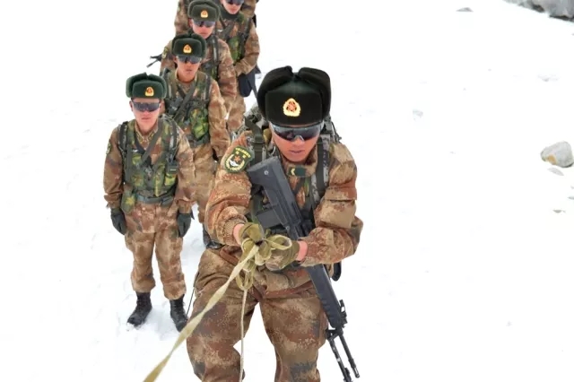 陸軍某邊防團(tuán)六連官兵冒著嚴(yán)寒、踏著積雪巡邏在海拔5000多米的雪山之巔。日復(fù)一日,年復(fù)一年,他們用青春與熱血在生命禁區(qū)譜寫出一曲曲戍邊衛(wèi)國(guó)的贊歌;用使命和擔(dān)當(dāng)在雪山之巔描繪出一幅幅壯美畫卷。(攝影/潘洪帥、鄒佐坪)