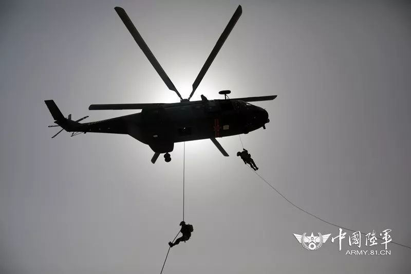 ▲突擊步兵采用繩降、索降方式同時(shí)實(shí)施機(jī)降。